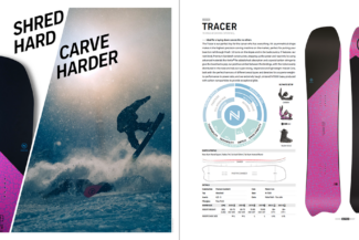 Creation of a 124 pages catalog for dealers to showcase the new snowboard and binding collections.